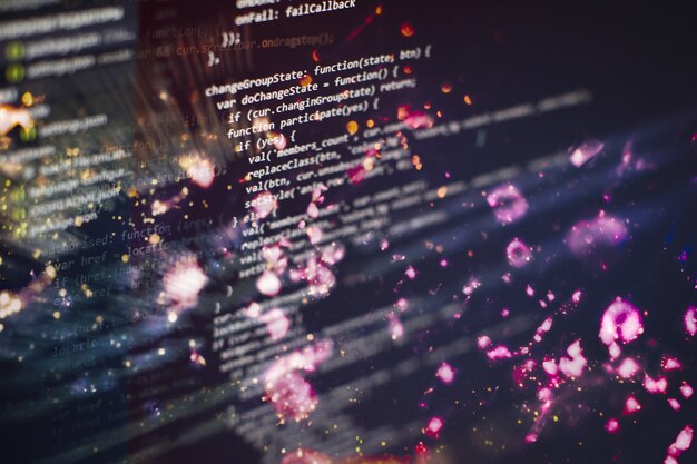 Code de script informatique abstrait. Écran de code de programmation du développeur de logiciels. Temps de travail de programmation de logiciels.